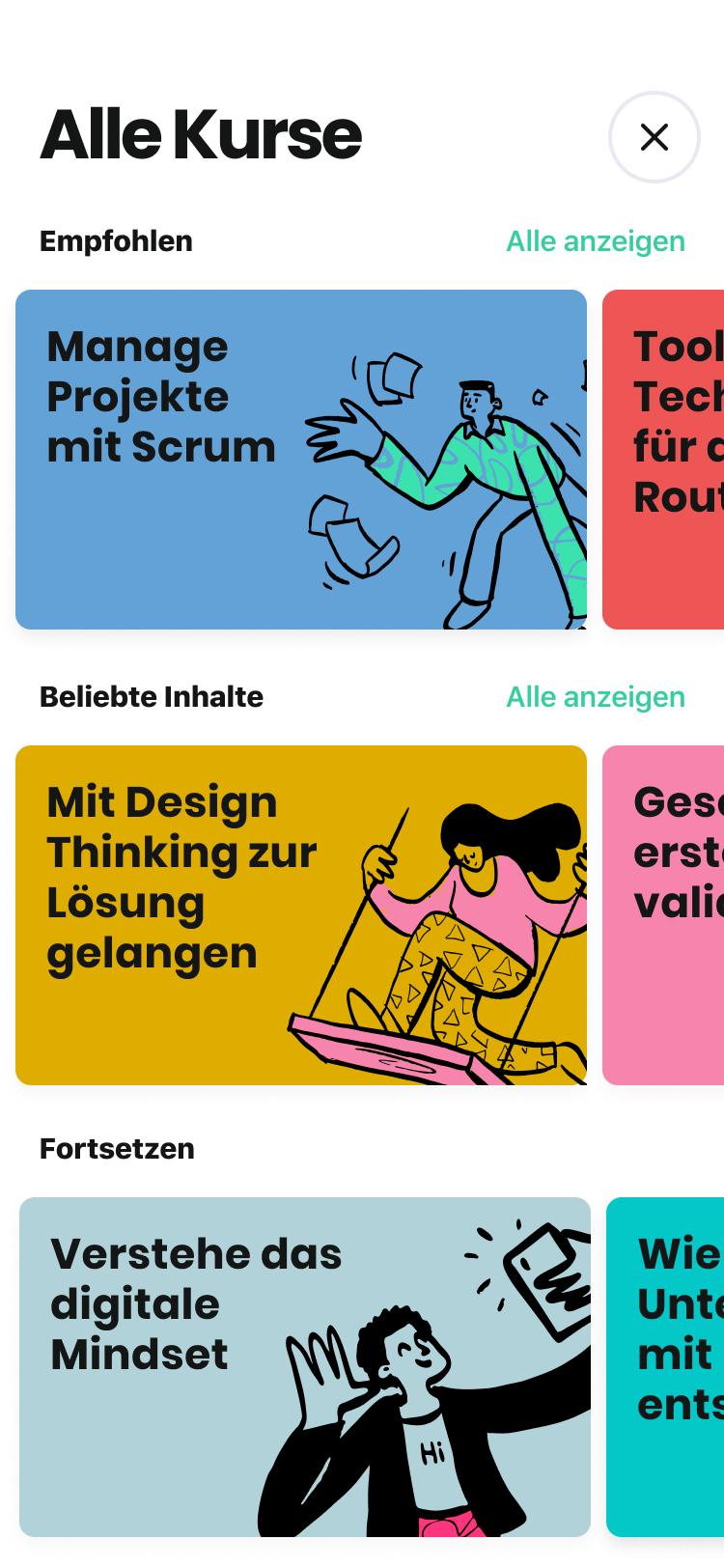 For a more engaging learning experience, Myndset packages these lessons into easily digestible, short (2-5 min) videos. Much like social media feeds, our designs prioritized quick access to contents while minimising the effort required to navigate many tabs and pages.