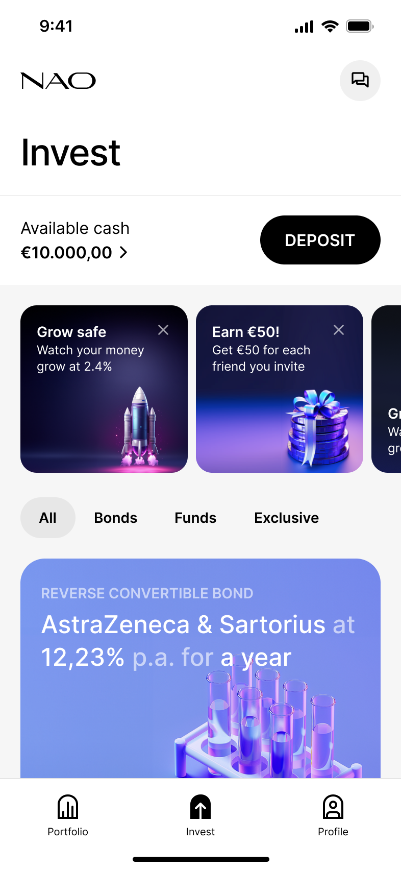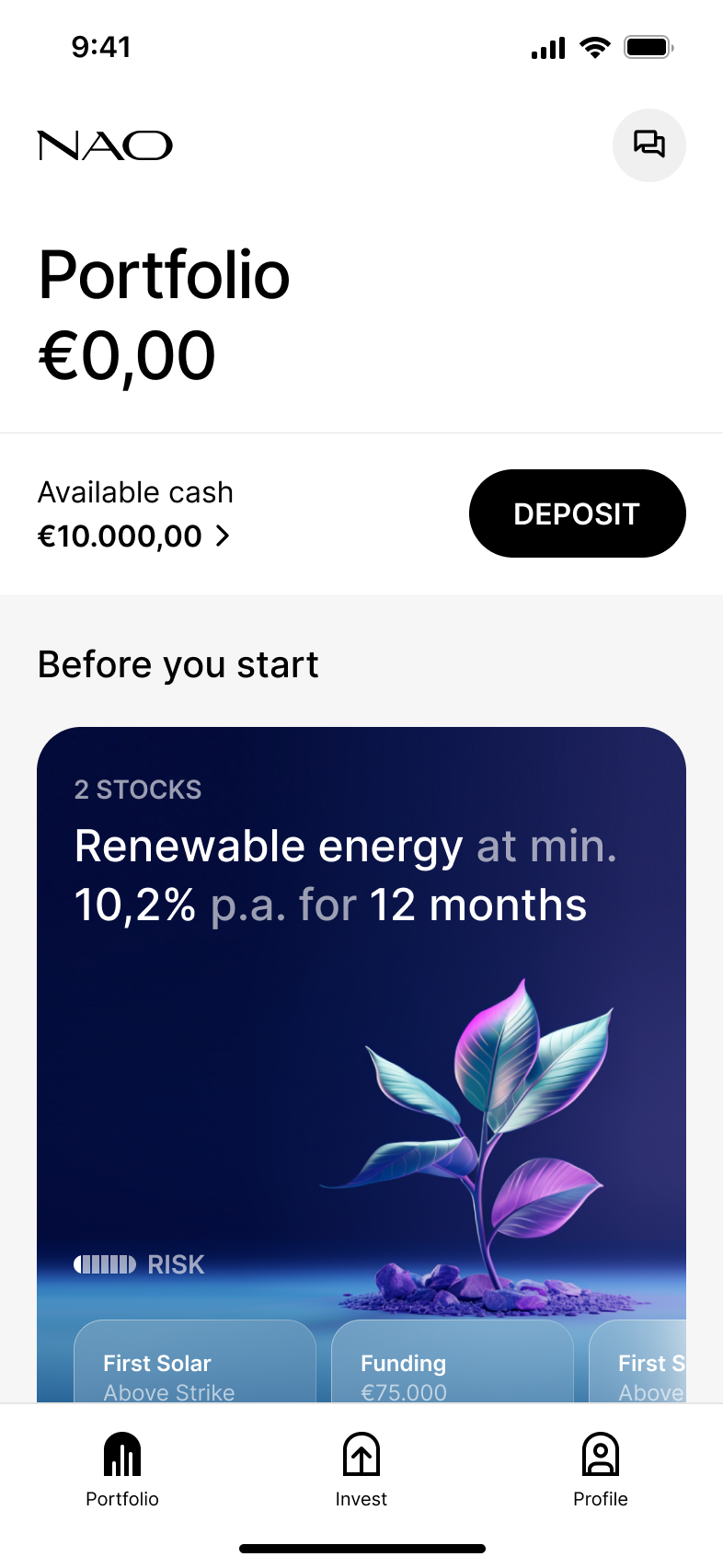 NAO is a German fintech startup that democratizes access to private and alternative market investments. Through a mobile-first platform, it allows everyday investors to participate in opportunities that were previously reserved for institutions - starting from just €1,000, with full compliance and a seamless user experience.